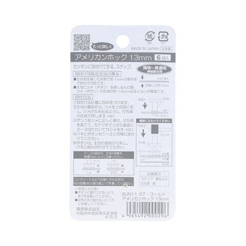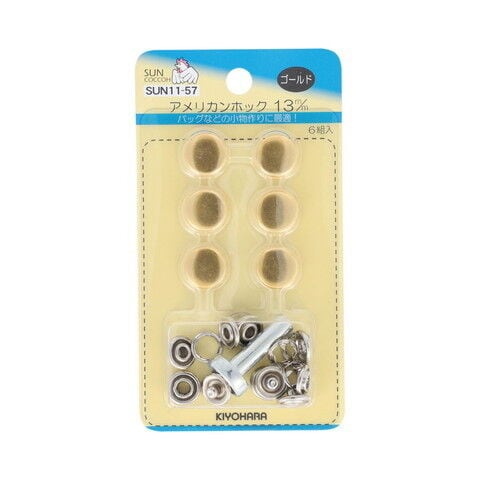 KIYOHARA アメリカンホック 6組(ゴールド・直径13mm) サンコッコー SUN11-57 【返品種別B】