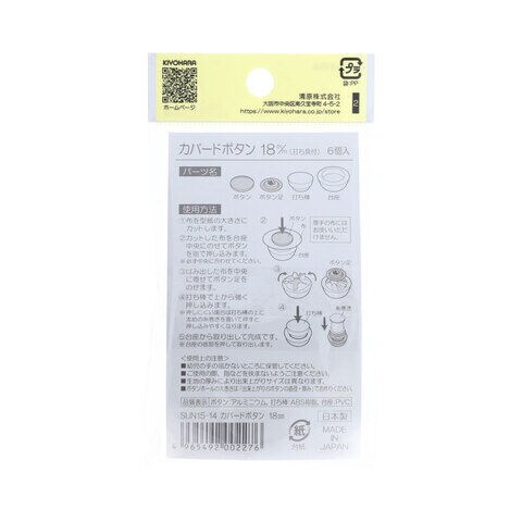 KIYOHARA カバードボタン打ち具付 6個(18mm ) サンコッコー SUN15-14 【返品種別B】