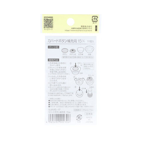 KIYOHARA カバードボタン補充用 11個(15mm ) サンコッコー SUN15-17 【返品種別B】