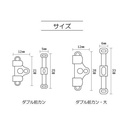 ◆幅広のベルトに最適なダブルの真ちゅう製の前カンです。金属アレルギーの人にやさしいニッケルフリー。