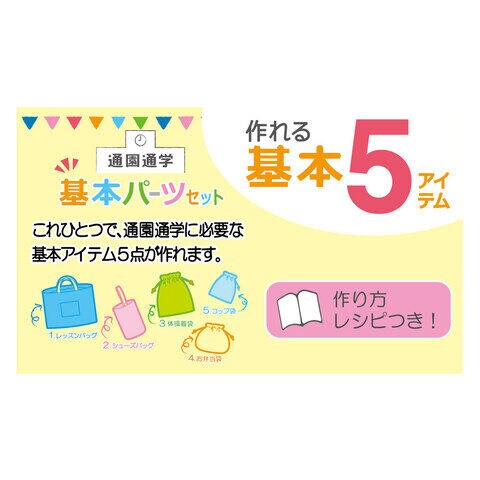 ◆これひとつで通園通学に必要な基本アイテム5点(レッスンバッグ、シューズケース、体操着袋、お弁当袋、コップ袋)が作れます。