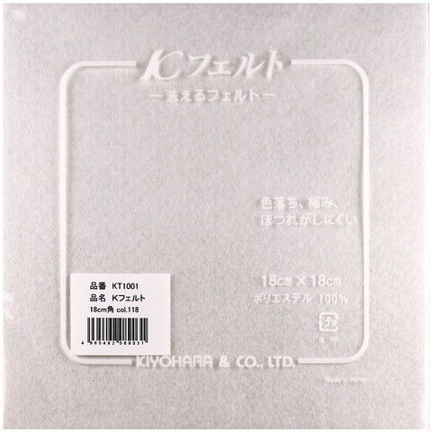 KIYOHARA 洗えるフェルト 1枚入(118・横18cm×縦18cm×厚さ1mm) Kフェルト KT1001118 【返品種別B】