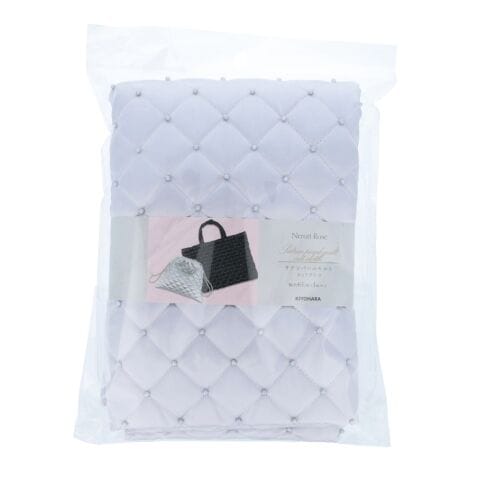 ◆サテン生地を使用し、パールをアクセントに縫い付けたキルティング生地です。