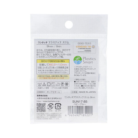 KIYOHARA ワンタッチプラスナップスリム 9組入(ベビーブルー・直径9mm) サンコッコー SUN17-85 【返品種別B】