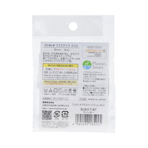 KIYOHARA ワンタッチプラスナップスリム 9組入(ラベンダー・直径9mm) サンコッコー SUN17-87 【返品種別B】