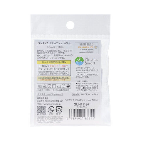 KIYOHARA ワンタッチプラスナップスリム 8組入(ラベンダー・直径13mm) サンコッコー SUN17-97 【返品種別B】