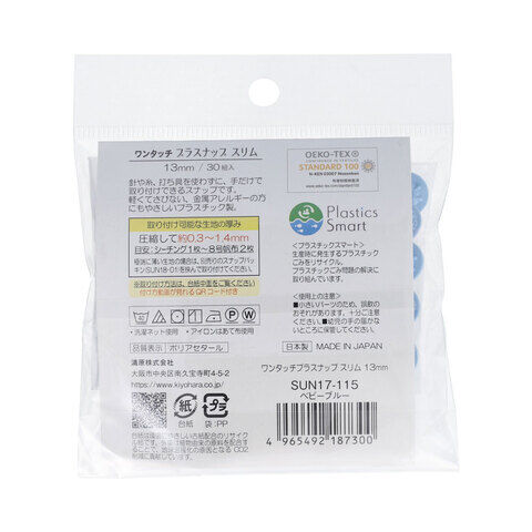KIYOHARA ワンタッチプラスナップスリム大容量 30組入(ベビーブルー・直径13mm) サンコッコー SUN17-115 【返品種別B】