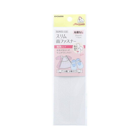 KIYOHARA スリム面ファスナー 粘着なし フック・ループ 各1枚入り (白・巾25mm×15cm) サンコッコー SUN51-110 【返品種別B】