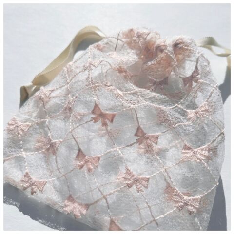 ◆小ぶりなリボンモチーフがガーリーなレース刺繍生地です。