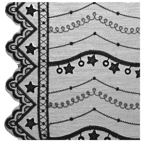 ◆小さな刺繍のスターがフリンジ状に並んでゆれる、可愛らしいレース生地です。