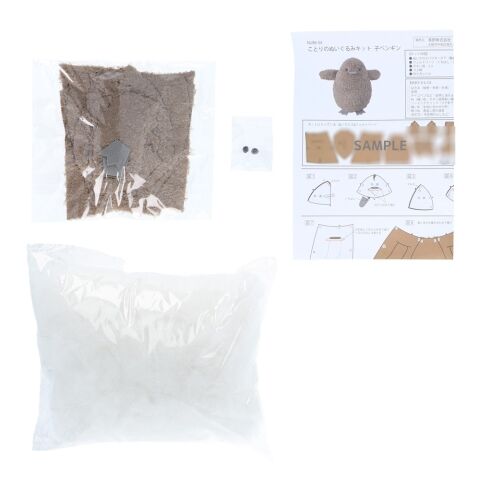- キット内容:ぬいクロスボア(カット済)/11枚、つぶ綿、フェルトパーツ(くちばし)/1枚、作り方レシピ、ボタン目/2コ