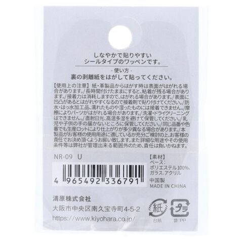 KIYOHARA ネロリローズ パールイニシャルシールワッペン U 横42mm×縦46mm×厚さ6mm NR-09-U 【返品種別B】