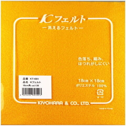 KIYOHARA 洗えるフェルト 1枚入(136・横18cm×縦18cm×厚さ1mm) Kフェルト KT1001136 【返品種別B】
