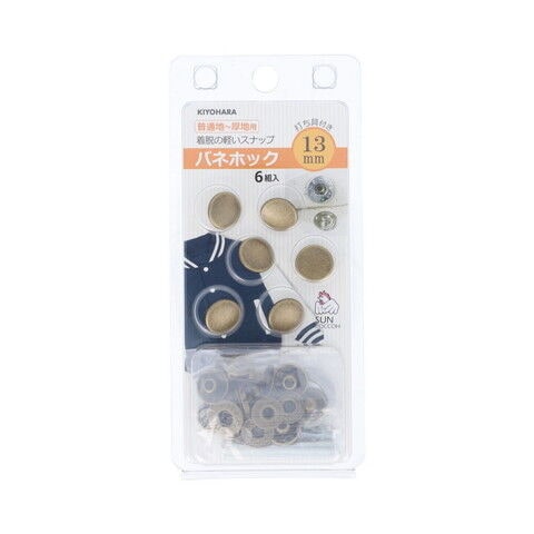 KIYOHARA バネホック 6組(アンティックゴールド・直径13mm) サンコッコー SUN18-23 【返品種別B】
