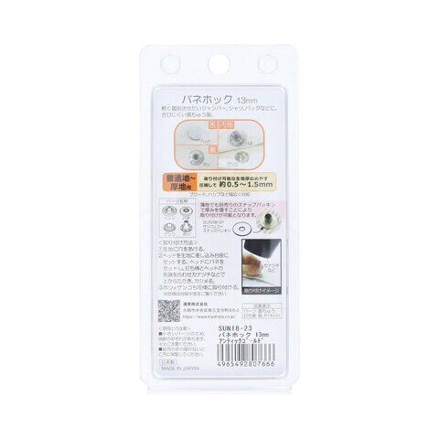 ◆軽い力で着脱できるスナップボタンです。普通地~厚地の生地に適しており、付属の打ち具を使って取り付けます。