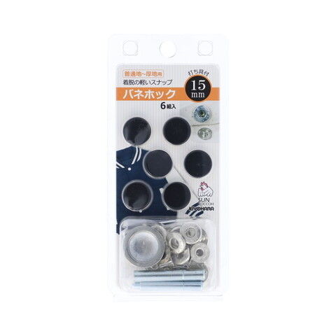 KIYOHARA バネホック 6組(ブラック・直径15mm) サンコッコー SUN18-34 【返品種別B】