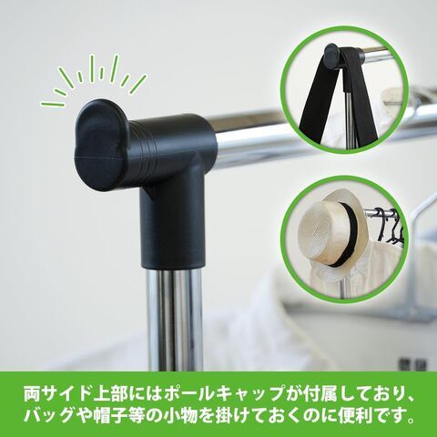 両サイド上部にはポールキャップが付属しており、バッグや帽子を掛けられます。