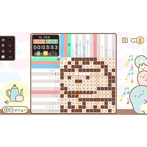 「映画 すみっコぐらし 空の王国とふたりのコ」に登場するキャラクターやアイテムをモチーフにしたパズルを解いて、ドットイラストを描くゲームです。