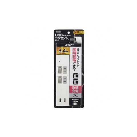 ヤザワ 個別スイッチ付(2個口+USB2ポート 2m) YAZAWA Y02KS422WH2U 【返品種別A】