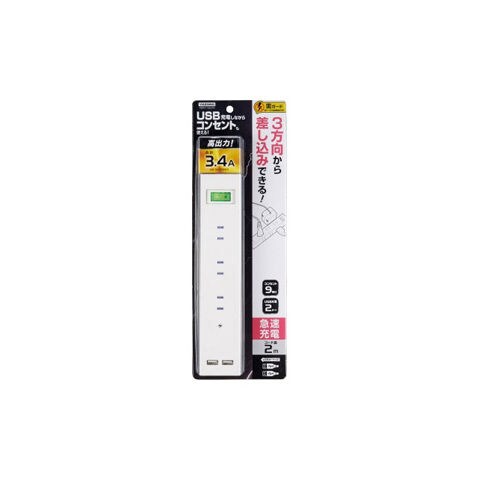 ヤザワ 集中スイッチ付(9個口タップ+USB2ポート2m )ホワイト YAZAWA H6BK11122UWH 【返品種別A】