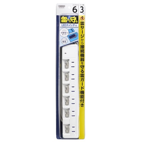 ヤザワ 雷ガード付節電タップ(6個口 3.0m)ホワイト YAZAWA H8KS663WH 【返品種別A】