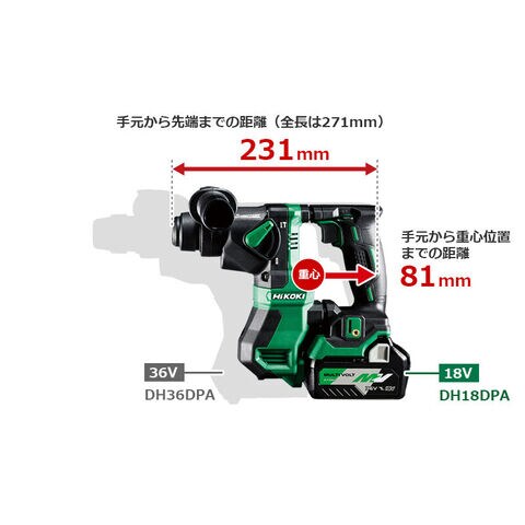 電動工具 HiKOKI 18V コードレスロータリハンマドリル 小型 SDSプラスシャンク ケース付き(本体のみ) ハイコーキ(日立工機) 電池パック・充電器別売 DH18DPA-NNK 【返品種別B】