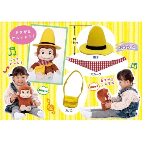 かわいいおしゃべりや楽しい音楽がながれるおさるのジョージのぬいぐるみ