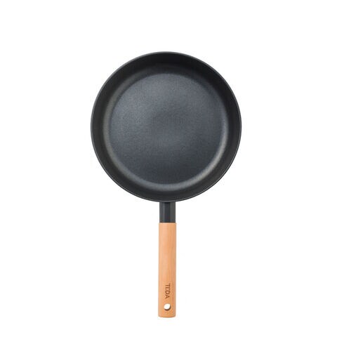 鉄のように黒い本体に、それを引き立たせるナチュラルカラーの木製ハンドル。シンプルなのに飽きのこないデザインにこだわりました。色んな調理に使える軽いマルチパン