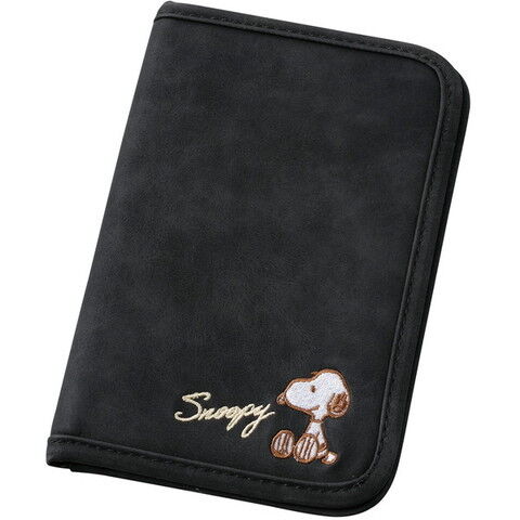 ◆ヌバック調の素材にワンポイントの刺繍がエレガントスヌーピーデザインのマルチケース