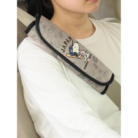 侍ジャパンのユニフォームを身にまとったスヌーピーのデザインが可愛いシートベルトパッド。
