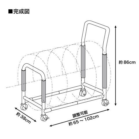 直径69cm以内、幅245mm以内のタイヤを4本保管できます。