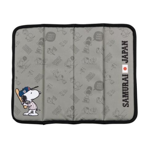 侍ジャパンのユニフォームを身にまとったスヌーピーのデザインが可愛い折り畳みクッション。