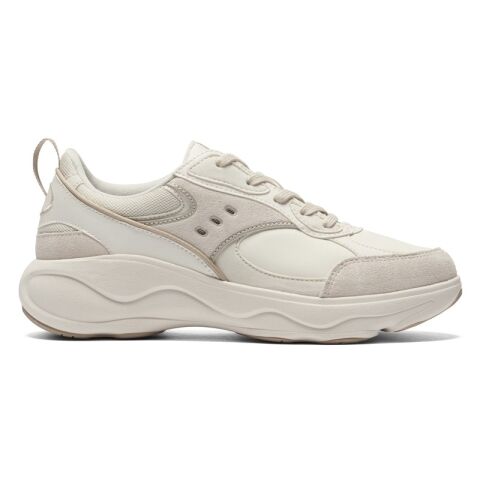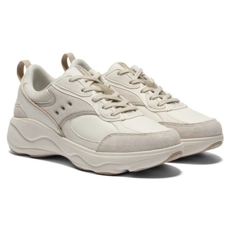 ◆アッパーはストレッチ性に優れた人工皮革を中心に、複数の素材使いで遊び心を演出。