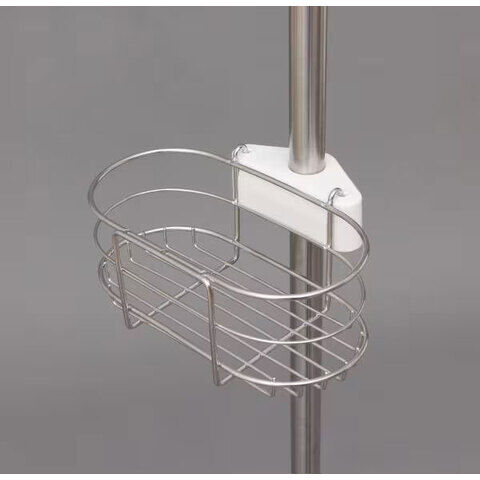 ◆ワイヤー仕様で水はけが良く衛生的で調節可能なかご、タオルやスポンジを掛けるのに便利なフック、石けんなどを置くのに便利な小物置きマット付きです。