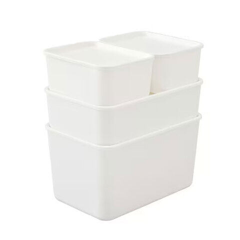 ◆シンプルで丸みのあるやわらかなデザインのフタ付き積み重ねBOXです。