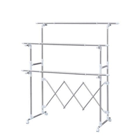◆干す量やスペースに合わせて、幅も高さも調節可能な大型伸縮タイプの室内物干しです。
