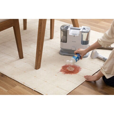 ◆使い方は簡単! 汚れに洗剤を垂らして、リンサークリーナーのヘッドのブラシでこすり、吸い込むだけです。