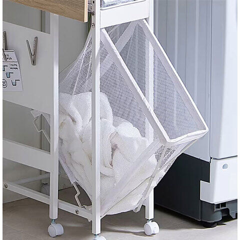 ◆木目調の天板とスチールを組み合わせたスタイリッシュなデザインのランドリーワゴンです。