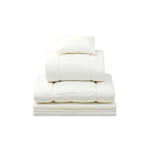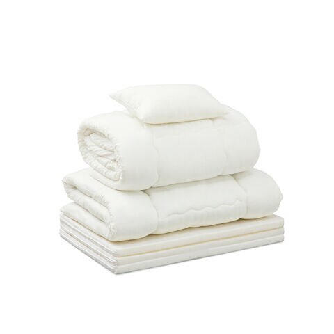 掛け布団、敷き布団、枕、掛け布団カバー、ボックスシーツ、枕カバー×2、枕パッド、収納バッグ、三つ折りマットレス