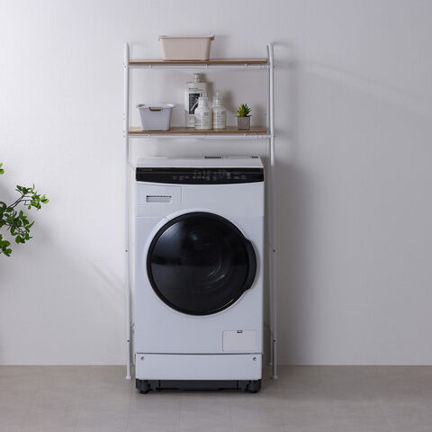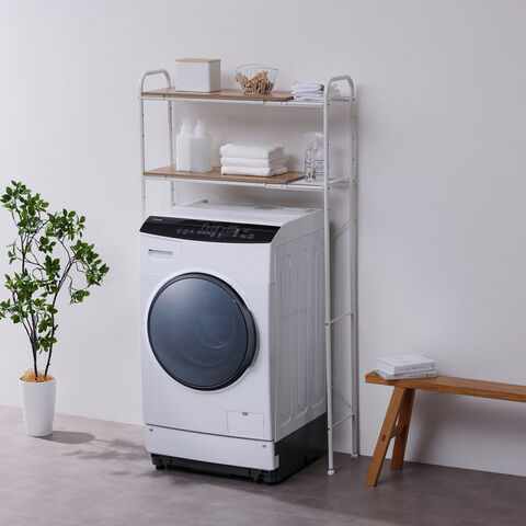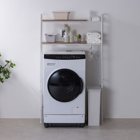 ◆インテリアに馴染む木目調の棚板は、ランドリー周りをおしゃれに収納できます。