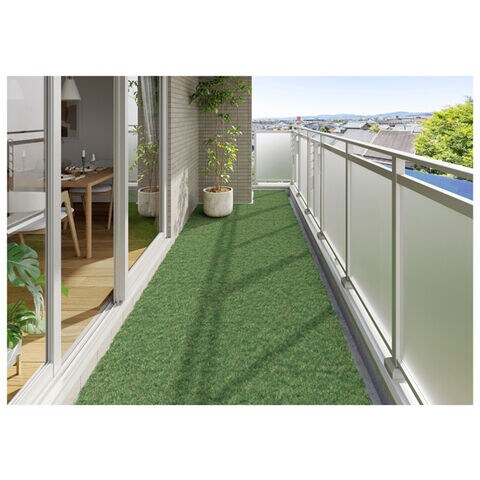 ◆ベランダや庭に敷くことができる、自然な仕上がりの人工芝タイルデッキです。