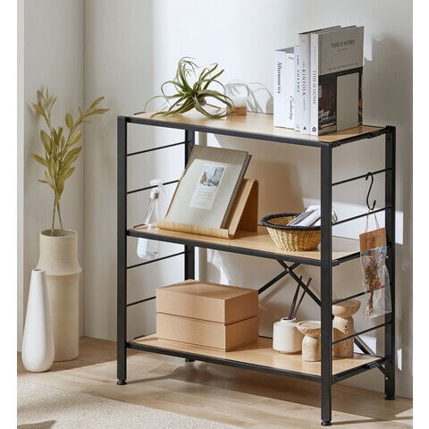 アイリスオーヤマ 組立簡単 連結スチールラック 3段タイプ(ナチュラルオーク) KRSR-3 【返品種別A】