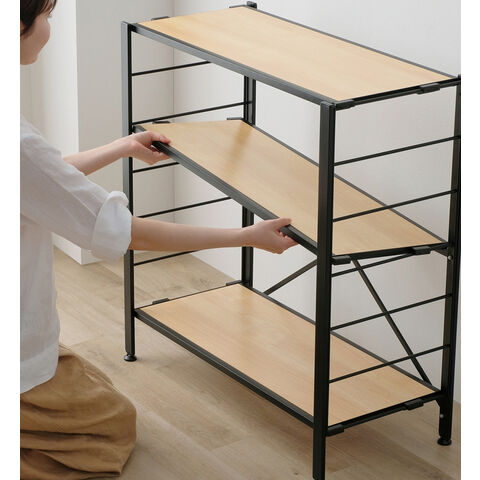 ◆3段タイプの組み立ては、フレームを開いて棚板を取り付けるだけの2STEPです。
