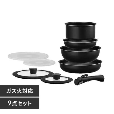 • セット内容:フライパン20cm・26cm、炒めなべ24cm、なべ18cm、ガラスふた18cm・24cm、PEシールふた18cm・24cm、マルチハンドル