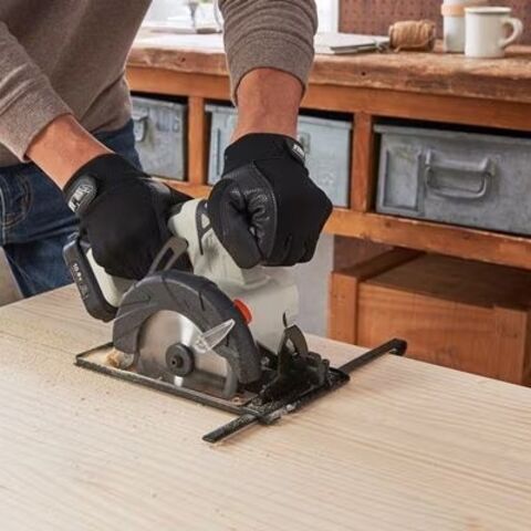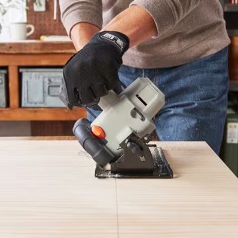◆厚みのある木もラクラクカットできる、直線切りに便利な充電式丸のこです。