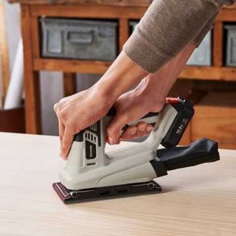 ◆コードレスで広い範囲を短時間で研磨できる、充電式オービタルサンダです。