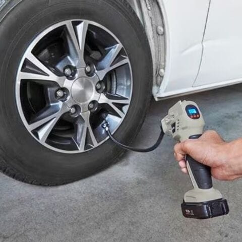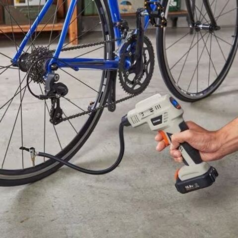 ◆どこでも使えるコードレスタイプで、電動ですばやく空気を注入できる充電式エアコンプレッサです。