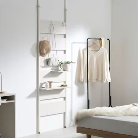 ◆ハーフ棚板を上部に設置すれば、ワンピースなどの長物も掛けられます。