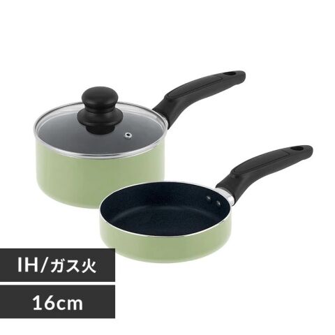 - セット内容:フライパン16cm、なべ16cm、ガラスふた16cm(フライパン・なべ兼用)