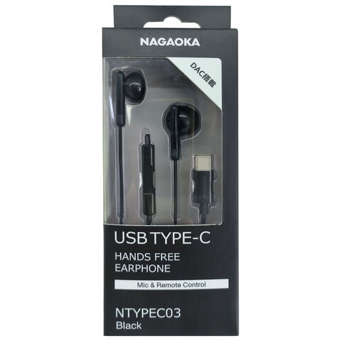 ナガオカ マイク&コントローラー搭載USB Type-C端子専用 密閉型カナルイヤホン(ブラック) NAGAOKA NTYPEC03BK 【返品種別A】